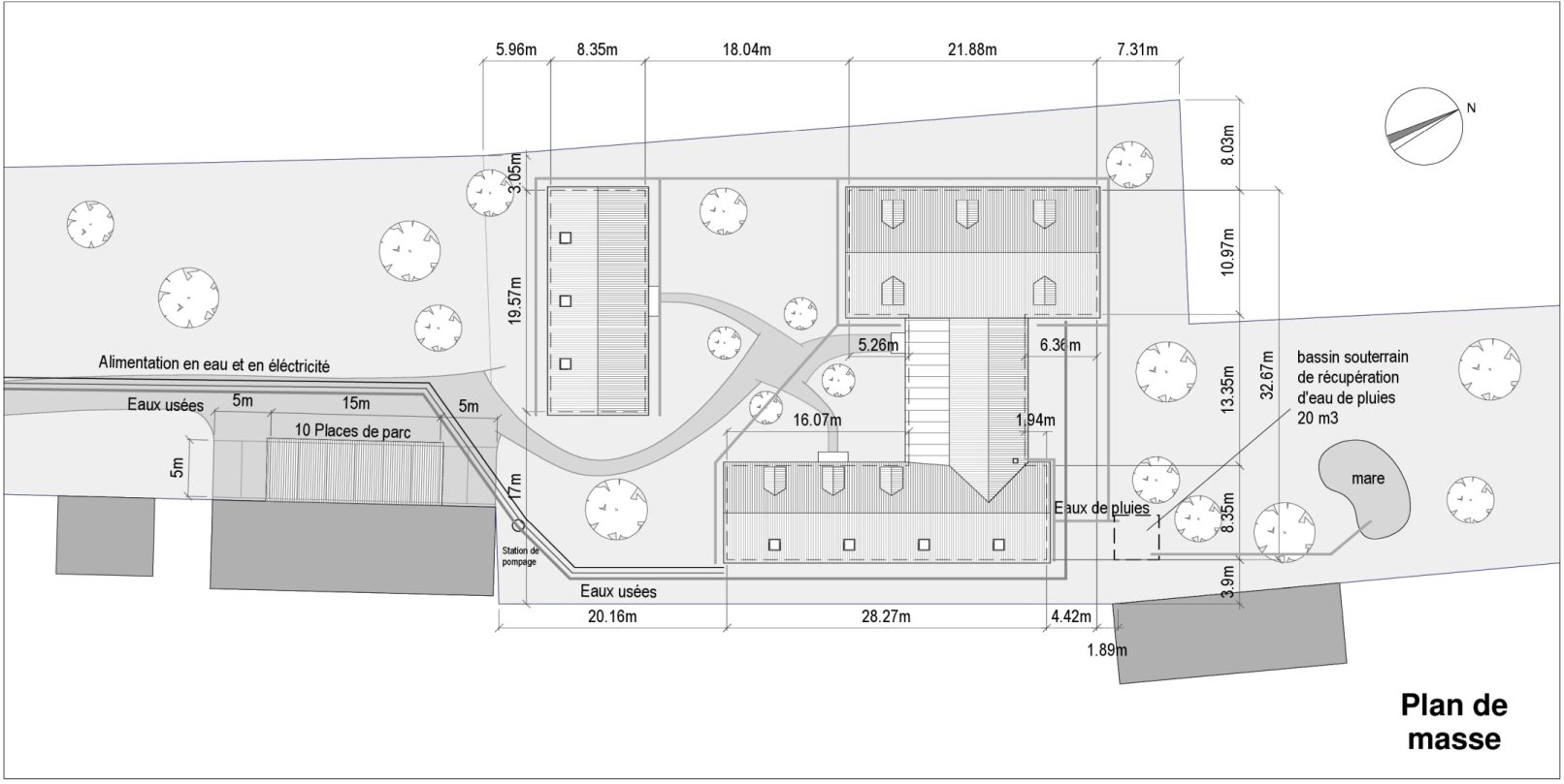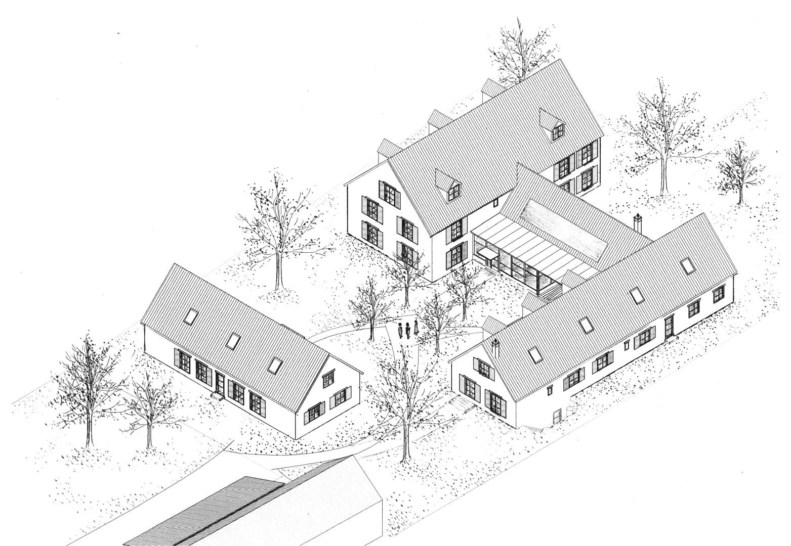 Unter grossen Opfern baute meine Bauherrschaft für sich und für kommenden Generationen ein gemeinschaftlich geführtes und selbstverwaltetes Altersheim mit der Idee, dass die Jüngeren und Fitteren die Bedürftigen pflegen sollten. Der ökologische Neubau weist 10 Einzimmerwohnungen mit je rund 50 m2 auf, zwei 3 1/2-Zimmerwohnungen, eine grosse Gemeinschaftsküche mit Wohnzimmer, einen Wintergarten, mehrere Gästezimmer, Wirtschaftsräume und einen Raum für eine auswärtige Krankenschwester. Die Lage im Dorf wurde so gewählt, dass die Wege kaum Gefälle aufweisen.
