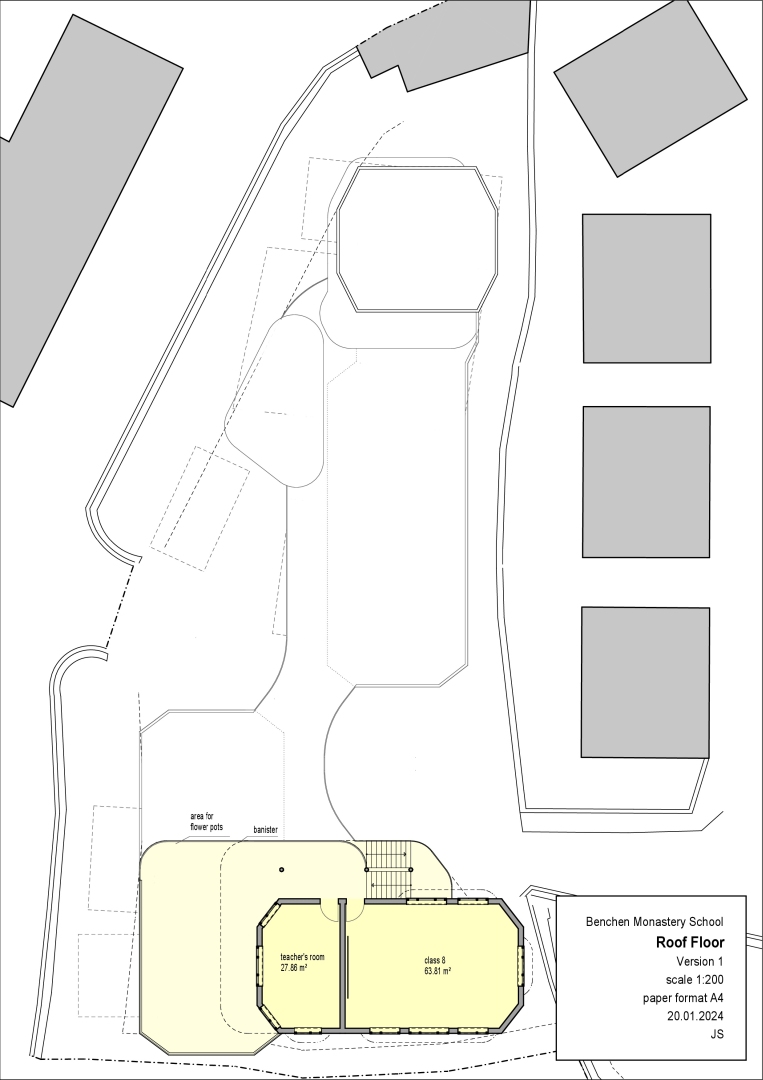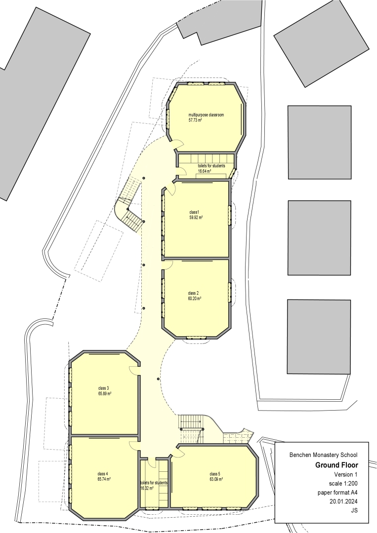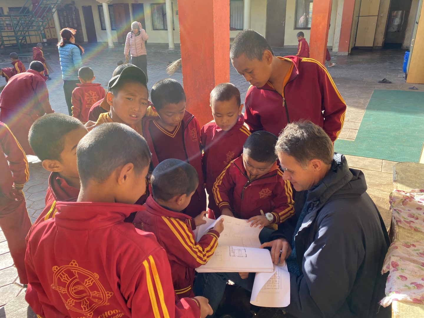 Ich bekam ein überwältigendes Raumprogramm und ein sehr enges Zeitfenster. In nur 2 Wochen sollte ein umfangreiches Schulprojekt entstehen und die Neuorganisation des bestehenden Gebäudekomplexes mit 10 Wohngruppen inkl. Unterkünften für Lehrpersonen und Mönche geplant werden. Vom Bestandsgebäude waren keine brauchbaren Pläne vorhanden.
