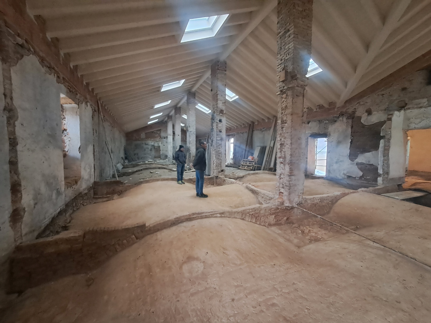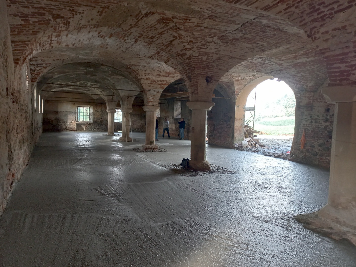 Osteria heisst auf Italienisch Gasthof. Auf der ehemaligen Handelsroute zwischen Genua und Milano, am Fusse des mittelalterlichen Städtchens Pasturana, steht die alte Osteria, die schon vor vielen Jahren verlassen wurde. Der 300 m2 grosse Raum im Erdgeschoss wurde früher für Lasttiere genutzt, später als Kuhstall. Fünf aus Stein gemeisselte Säulen Tragen insgesamt zwölf Gewölbe. Die kunstvoll behauenen Artefakte stammen aus einem Kloster, welches im 16.Jahrhundert abgebrannt ist. Über den Gewölben wurde Heu und Stroh gelagert. Fast alle Räume im Erdgeschoss und teilweise auch im Obergeschoss haben ein Gewölbe. Sie vermitteln ein sehr harmonisches Raumerlebnis.