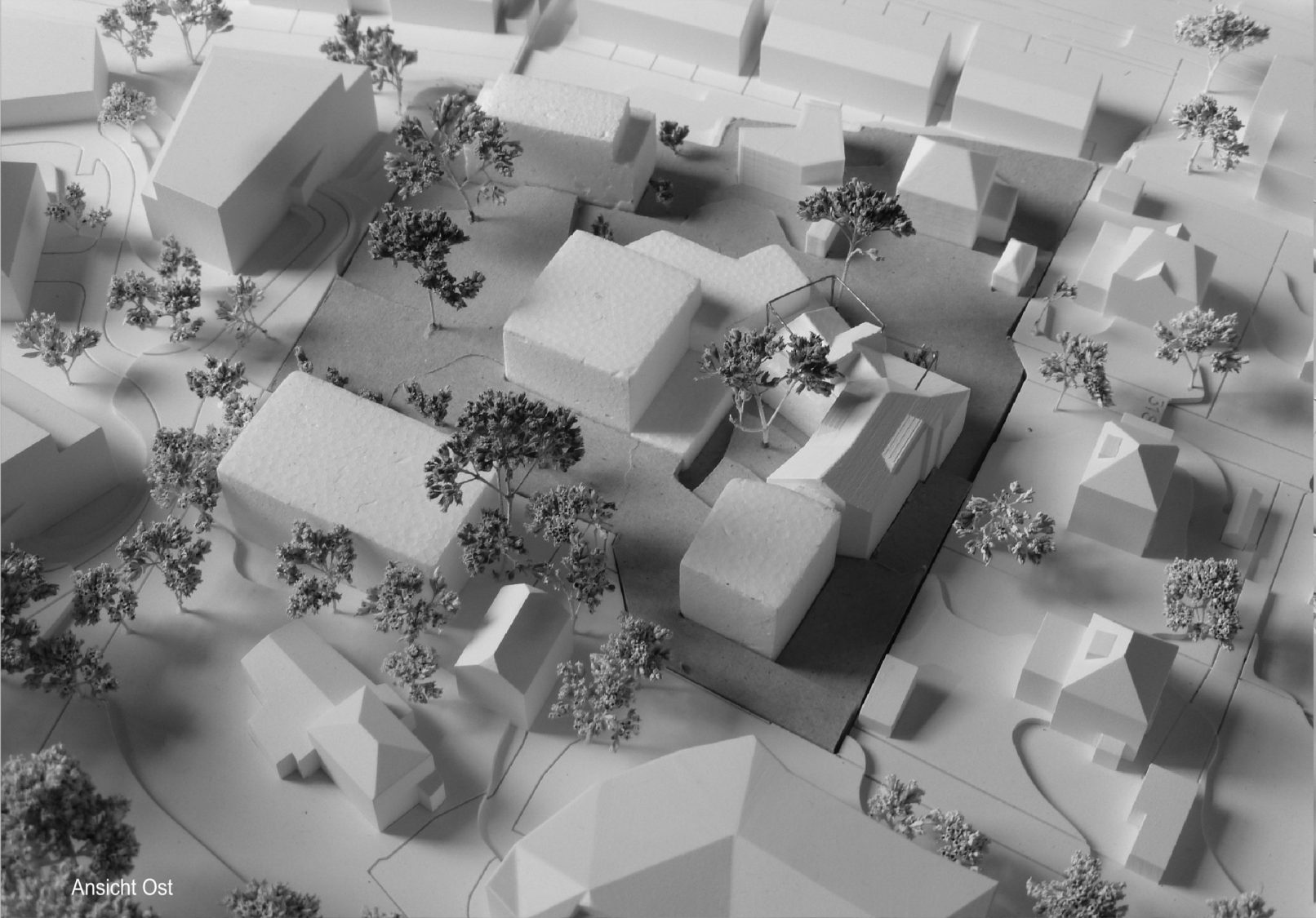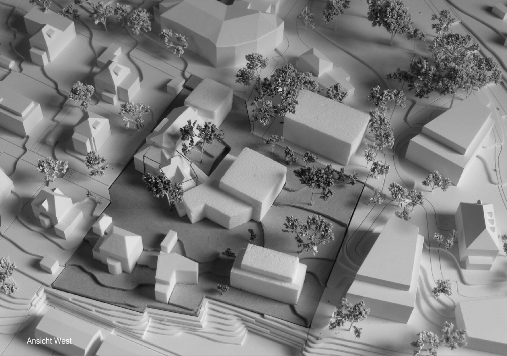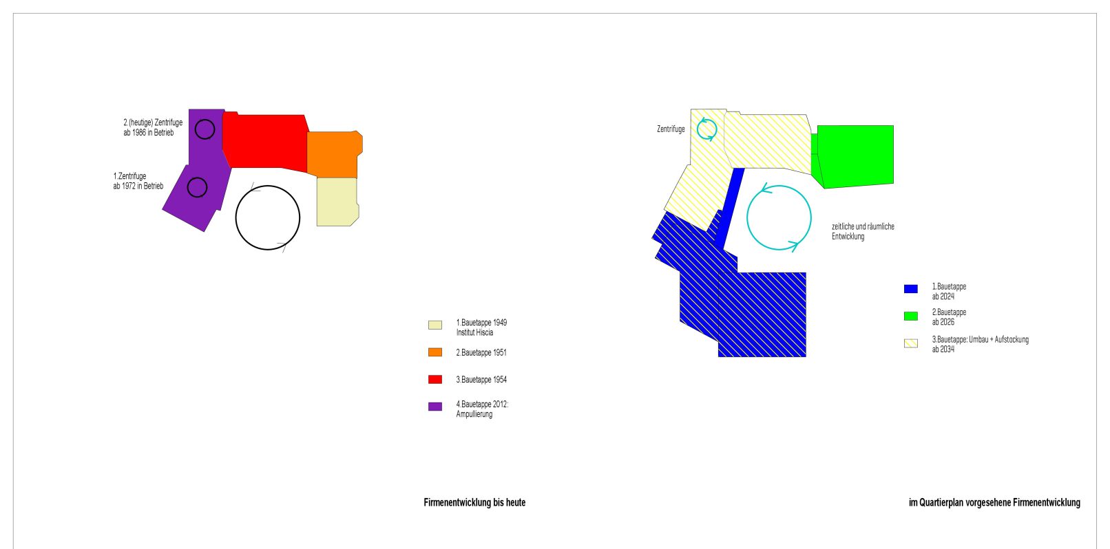 Leitidee: Die künftige Entwicklung der Firma soll etappenweise in Angriff genommen werden und auf gewachsene Strukturen Rücksicht nehmen. Das Herzstück der Produktion ist die Zentrifuge. Sie wurde in jahrzehntelanger Forschungsarbeit entwickelt und optimiert und kann ihren Standort nicht ohne grossen Aufwand und Kosten wechseln. Somit muss sich die innere Organisation nach ihr richten. Im Aussenbereich gilt es, das wertvolle Erbe der Parklandschaft, der mächtigen Solitärbäume und der Aussenräume zu schützen und durch die Quartierplanung aufzuwerten.